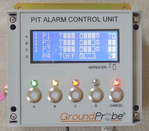 The dispatch unit is installed inside a manned control room and provides an overview of the pit units. The repeater unit should be installed near the edge of the pit with line-of-site views of both the control room tower and the pods in the pit. Depending on the mine topology and the area to be covered, more than one type of repeater might be needed (link repeater, repeater or rim repeater). The pod unit consists of a trailer fitted with surveillance equipment that can be positioned in high risk areas inside the mining pit itself. The pit alarm operates with radio frequency signals which provide communication between the pod unit via the repeater and the dispatch unit and vice versa.